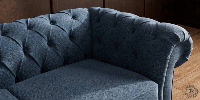 7.2.10 Gosford II Deep Sit 3 Seater Small Sofa Ripple Chenille Dark Blue Castor - Light | Made Click here to use our website with more accessibility support, for example screen readers