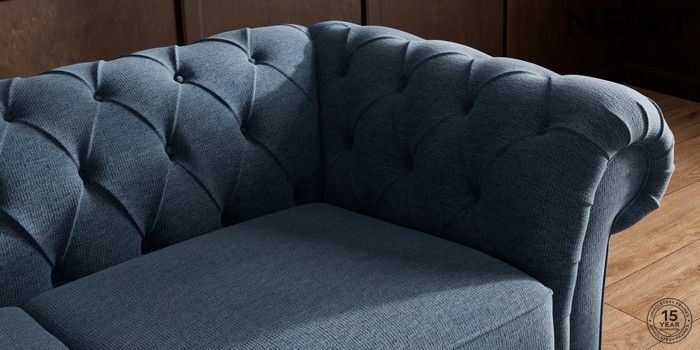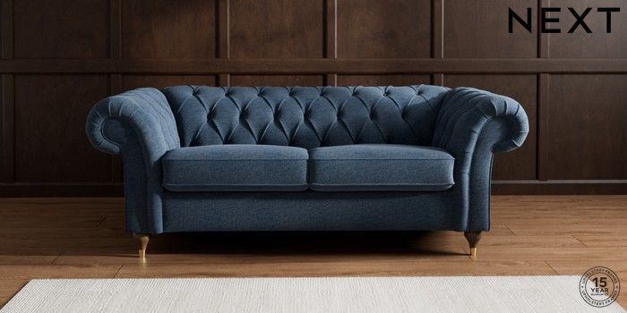 7.2.10 Gosford II Deep Sit 3 Seater Small Sofa Ripple Chenille Dark Blue Modern Turned Metal Cap - Mid | Made Click here to use our website with more accessibility support, for example screen readers