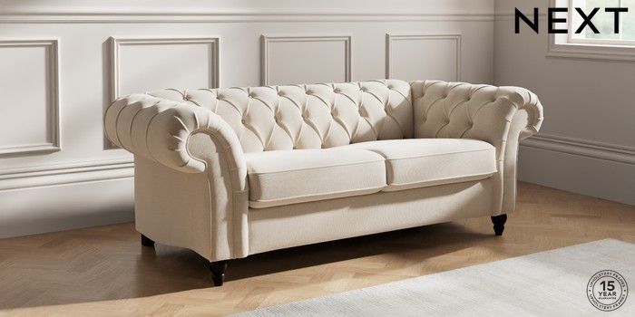 Bring timeless charm and comfort into your home with the Gosford Chesterfield. This sofa boasts stunning hand-crafted deep buttoning and is built for lasting support. Its unique "Firmer Sit" seat cushions offer ultimate comfort and durability, always returning to their neat, tailored shape. These cushions are low-maintenance and reversible—just rotate and plump them regularly to keep them looking fresh. We've also added luxurious scatter cushions for extra cosiness. Personalise your Gosford by selecting from a wide array of fabrics and various feet options.