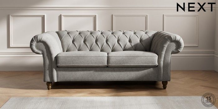 7.2.10 Gosford II Deep Sit 3 Seater Small Sofa Tweedy Chenille Mid Grey Low Turned - Mid | Made Click here to use our website with more accessibility support, for example screen readers