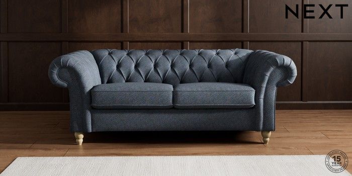 7.2.10 Gosford II Deep Sit 3 Seater Small Sofa Tweedy Chenille Navy Blue Low Turned - Light | Made Click here to use our website with more accessibility support, for example screen readers