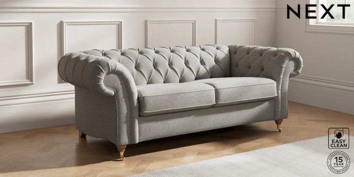 7.2.10 Gosford II Deep Sit 3 Seater Small Sofa Woven Chenille Easy Clean Light Grey Castor - Light | Made Click here to use our website with more accessibility support, for example screen readers