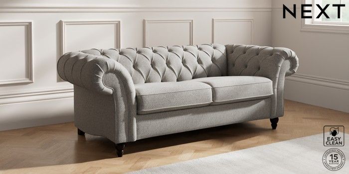 7.2.10 Gosford II Deep Sit 3 Seater Small Sofa Woven Chenille Easy Clean Light Grey Low Turned - Dark | Made Click here to use our website with more accessibility support, for example screen readers