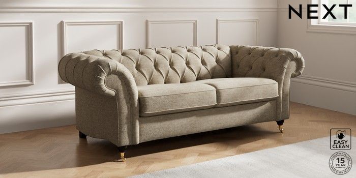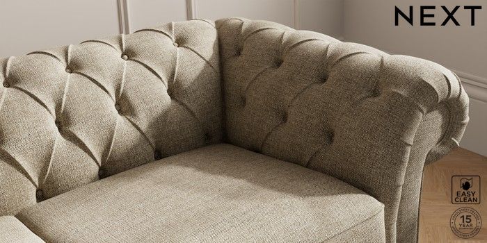 7.2.10 Gosford II Deep Sit 3 Seater Small Sofa Woven Chenille Easy Clean Mid Natural Castor - Dark | Made Click here to use our website with more accessibility support, for example screen readers