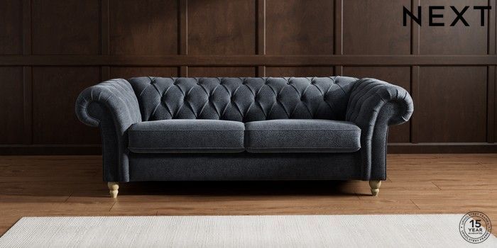 7.2.10 Gosford II Deep Sit 3 Seater Sofa Boucle Chenille Dark Slate Blue Low Turned - Light | Made Click here to use our website with more accessibility support, for example screen readers
