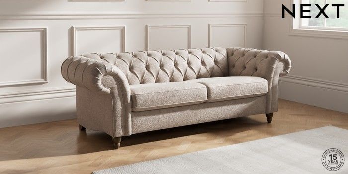 7.2.10 Gosford II Deep Sit 3 Seater Sofa Boucle Chenille Light Natural Low Turned - Mid | Made Click here to use our website with more accessibility support, for example screen readers