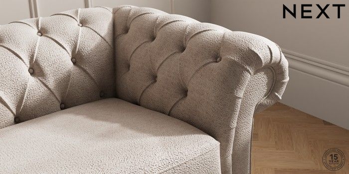 7.2.10 Gosford II Deep Sit 3 Seater Sofa Boucle Chenille Light Natural Modern Turned Metal Cap - Mid | Made Click here to use our website with more accessibility support, for example screen readers