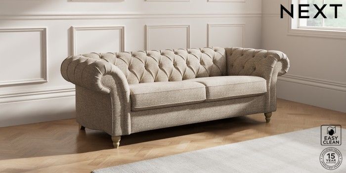 7.2.10 Gosford II Deep Sit 3 Seater Sofa Chunky Boucle Easy Clean Mid Natural Low Turned - Light | Made Click here to use our website with more accessibility support, for example screen readers