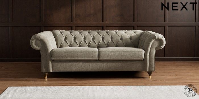 7.2.10 Gosford II Deep Sit 3 Seater Sofa Chunky Marl Light Olive Green Modern Turned Metal Cap - Mid | Made Click here to use our website with more accessibility support, for example screen readers