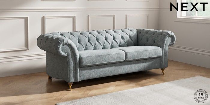 7.2.10 Gosford II Deep Sit 3 Seater Sofa Chunky Weave Mid Blue Castor - Light | Made Click here to use our website with more accessibility support, for example screen readers