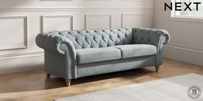 7.2.10 Gosford II Deep Sit 3 Seater Sofa Chunky Weave Mid Blue Low Turned - Light | Made Click here to use our website with more accessibility support, for example screen readers