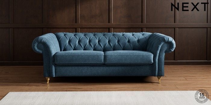 7.2.10 Gosford II Deep Sit 3 Seater Sofa Cotswold Chenille Dark Blue Castor - Light | Made Click here to use our website with more accessibility support, for example screen readers