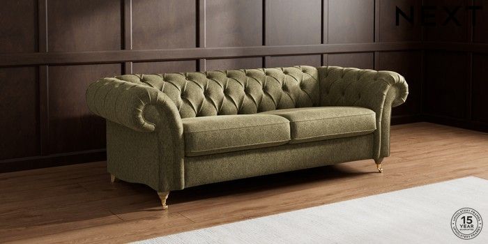 7.2.10 Gosford II Deep Sit 3 Seater Sofa Cotswold Chenille Dark Green Castor - Light | Made Click here to use our website with more accessibility support, for example screen readers