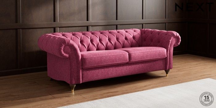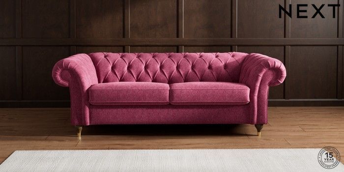 7.2.10 Gosford II Deep Sit 3 Seater Sofa Cotswold Chenille Dark Raspberry Pink Modern Turned Metal Cap - Mid | Made Click here to use our website with more accessibility support, for example screen readers