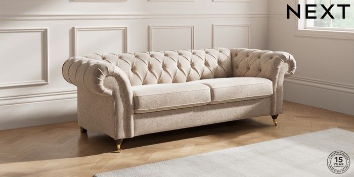 7.2.10 Gosford II Deep Sit 3 Seater Sofa Cotswold Chenille Light Natural Castor - Mid | Made Click here to use our website with more accessibility support, for example screen readers