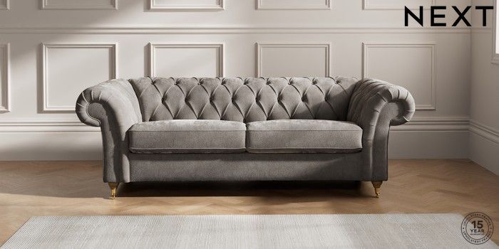 7.2.10 Gosford II Deep Sit 3 Seater Sofa Distressed Velour French Grey Castor - Light | Made Click here to use our website with more accessibility support, for example screen readers