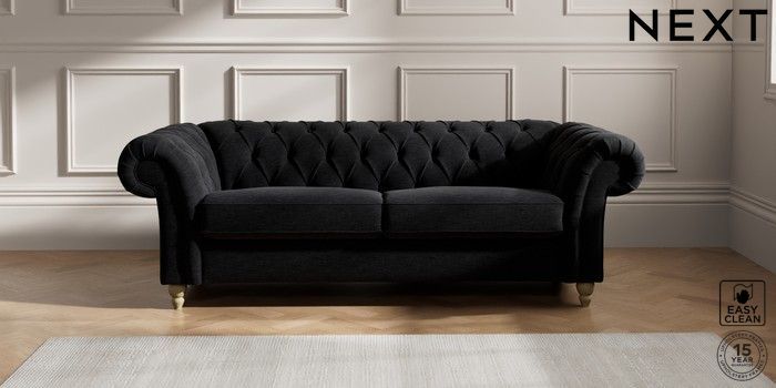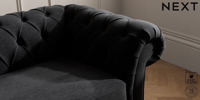 7.2.10 Gosford II Deep Sit 3 Seater Sofa Fine Chenille Easy Clean Black Low Turned - Light | Made Click here to use our website with more accessibility support, for example screen readers