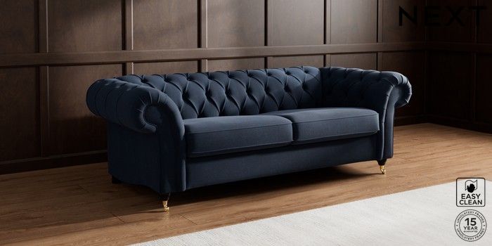 7.2.10 Gosford II Deep Sit 3 Seater Sofa Fine Chenille Easy Clean Dark Navy Blue Castor - Dark | Made Click here to use our website with more accessibility support, for example screen readers