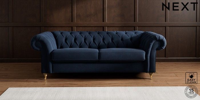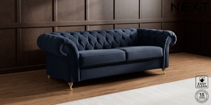 7.2.10 Gosford II Deep Sit 3 Seater Sofa Fine Chenille Easy Clean Dark Navy Blue Castor - Light | Made Click here to use our website with more accessibility support, for example screen readers