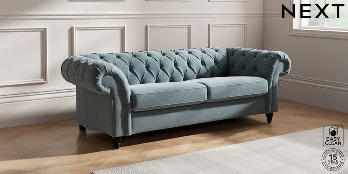 7.2.10 Gosford II Deep Sit 3 Seater Sofa Fine Chenille Easy Clean Mid Blue Low Turned - Dark | Made Click here to use our website with more accessibility support, for example screen readers