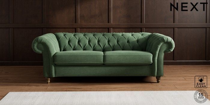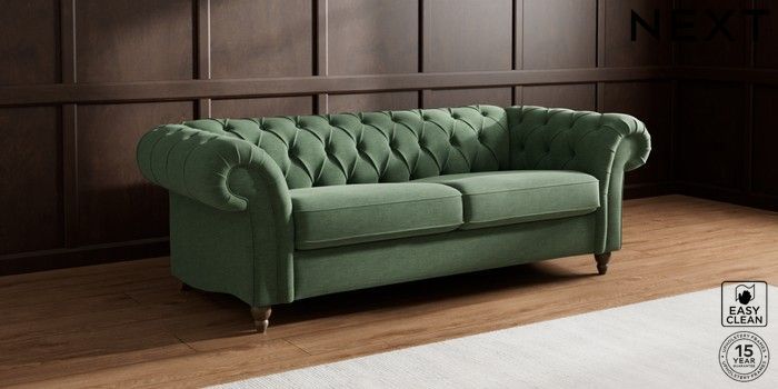 7.2.10 Gosford II Deep Sit 3 Seater Sofa Fine Chenille Easy Clean Mid Khaki Green Low Turned - Mid | Made Click here to use our website with more accessibility support, for example screen readers
