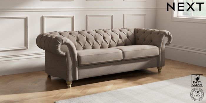 7.2.10 Gosford II Deep Sit 3 Seater Sofa Fine Chenille Easy Clean Mid Taupe Brown Low Turned - Light | Made Click here to use our website with more accessibility support, for example screen readers