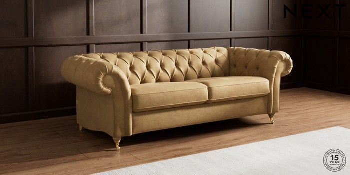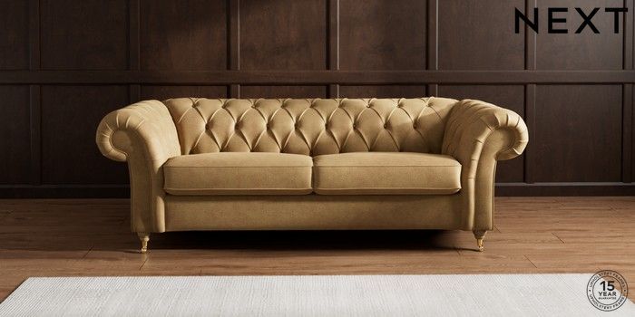 7.2.10 Gosford II Deep Sit 3 Seater Sofa Luxe Chenille Honey Yellow Castor - Light | Made Click here to use our website with more accessibility support, for example screen readers