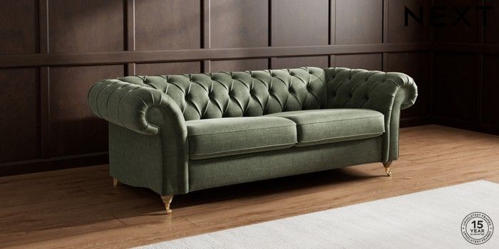 7.2.10 Gosford II Deep Sit 3 Seater Sofa Luxe Chenille Mid Green Castor - Light | Made Click here to use our website with more accessibility support, for example screen readers