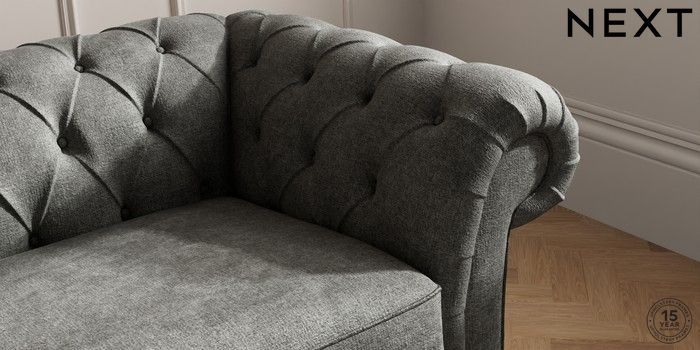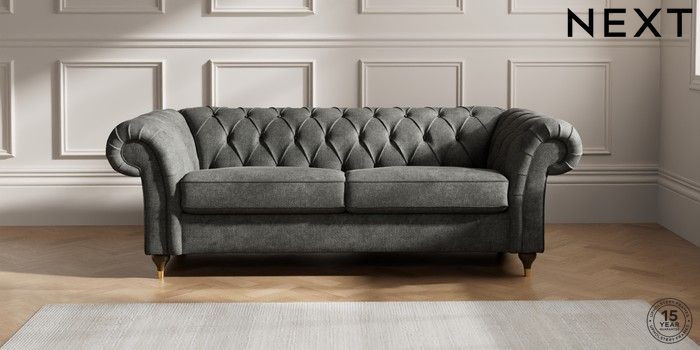 7.2.10 Gosford II Deep Sit 3 Seater Sofa Plush Chenille Dark Grey Modern Turned Metal Cap - Mid | Made Click here to use our website with more accessibility support, for example screen readers