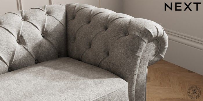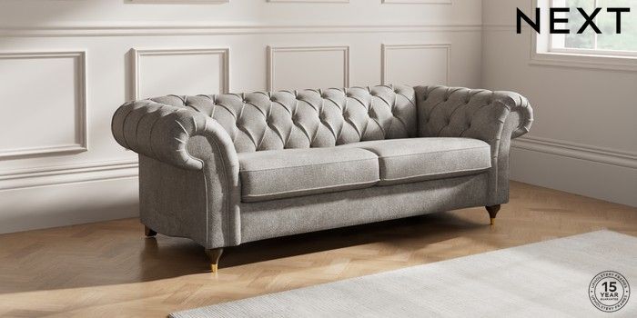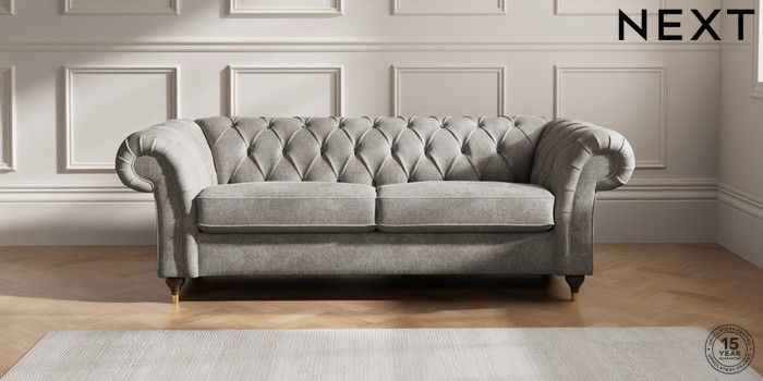 7.2.10 Gosford II Deep Sit 3 Seater Sofa Plush Chenille Light Grey Modern Turned Metal Cap - Mid | Made Click here to use our website with more accessibility support, for example screen readers