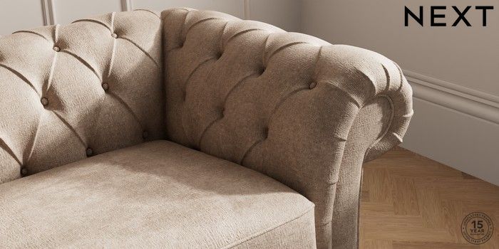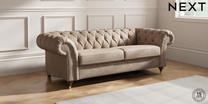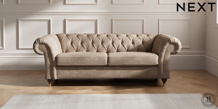 7.2.10 Gosford II Deep Sit 3 Seater Sofa Plush Chenille Mid Natural Modern Turned Metal Cap - Mid | Made Click here to use our website with more accessibility support, for example screen readers
