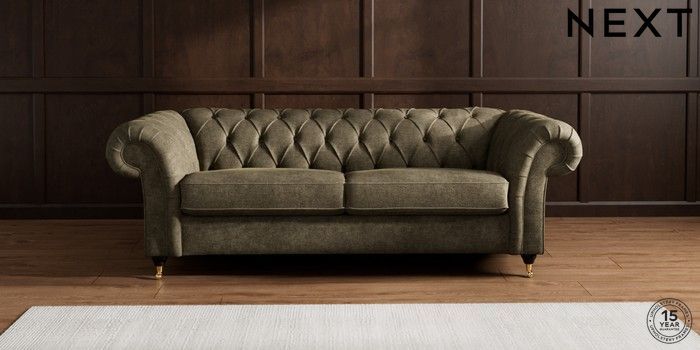 7.2.10 Gosford II Deep Sit 3 Seater Sofa Plush Chenille Moss Green Castor - Dark | Made Click here to use our website with more accessibility support, for example screen readers