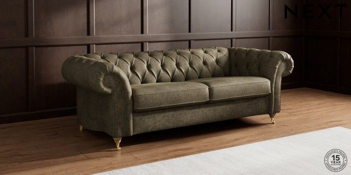 7.2.10 Gosford II Deep Sit 3 Seater Sofa Plush Chenille Moss Green Castor - Light | Made Click here to use our website with more accessibility support, for example screen readers