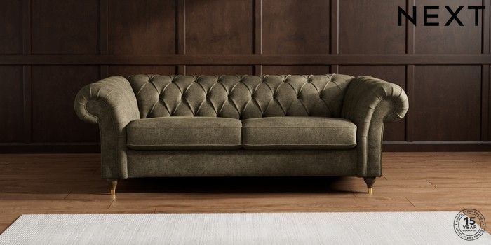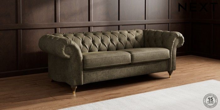 7.2.10 Gosford II Deep Sit 3 Seater Sofa Plush Chenille Moss Green Modern Turned Metal Cap - Mid | Made Click here to use our website with more accessibility support, for example screen readers