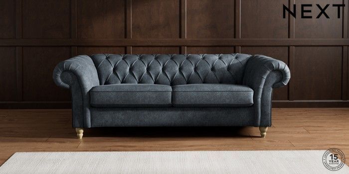 7.2.10 Gosford II Deep Sit 3 Seater Sofa Plush Chenille Slate Blue Low Turned - Light | Made Click here to use our website with more accessibility support, for example screen readers