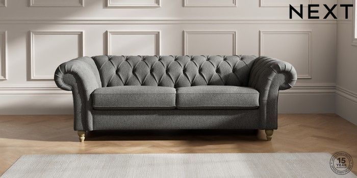 7.2.10 Gosford II Deep Sit 3 Seater Sofa Tweedy Chenille Dark Grey Low Turned - Light | Made Click here to use our website with more accessibility support, for example screen readers