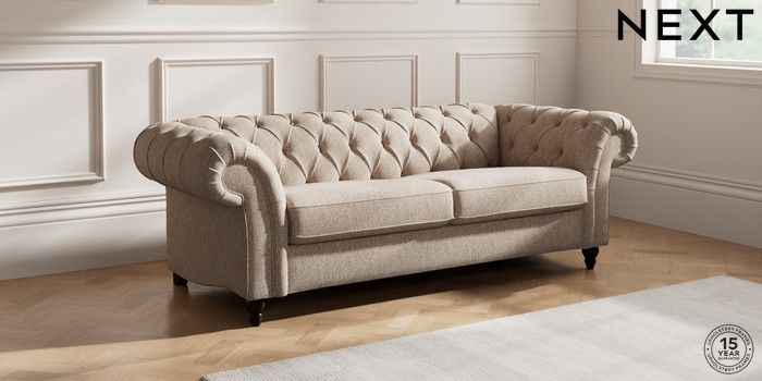7.2.10 Gosford II Deep Sit 3 Seater Sofa Tweedy Chenille Mid Natural Low Turned - Dark | Made Click here to use our website with more accessibility support, for example screen readers
