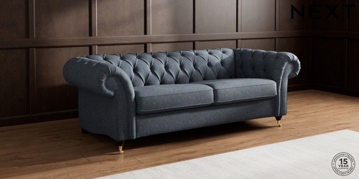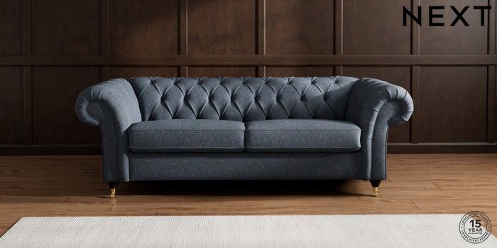 7.2.10 Gosford II Deep Sit 3 Seater Sofa Tweedy Chenille Navy Blue Castor - Dark | Made Click here to use our website with more accessibility support, for example screen readers