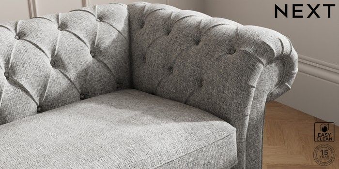 7.2.10 Gosford II Deep Sit 4 Seater Sofa Chunky Boucle Easy Clean Light Grey Modern Turned Metal Cap - Mid | Made Click here to use our website with more accessibility support, for example screen readers