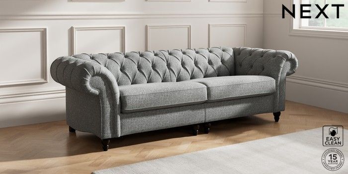 7.2.10 Gosford II Deep Sit 4 Seater Sofa Chunky Boucle Easy Clean Mid Grey Low Turned - Dark | Made Click here to use our website with more accessibility support, for example screen readers