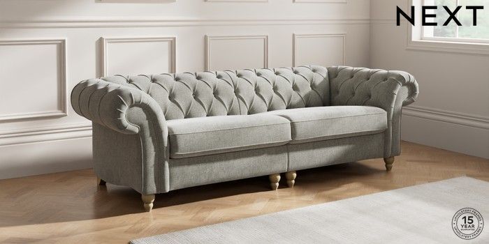 7.2.10 Gosford II Deep Sit 4 Seater Sofa Chunky Chenille Light Grey Low Turned - Light | Made Click here to use our website with more accessibility support, for example screen readers