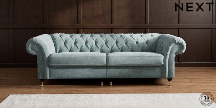 7.2.10 Gosford II Deep Sit 4 Seater Sofa Chunky Chenille Light Teal Green Castor - Dark | Made Click here to use our website with more accessibility support, for example screen readers