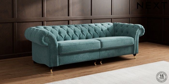 7.2.10 Gosford II Deep Sit 4 Seater Sofa Chunky Chenille Mid Teal Green Castor - Dark | Made Click here to use our website with more accessibility support, for example screen readers