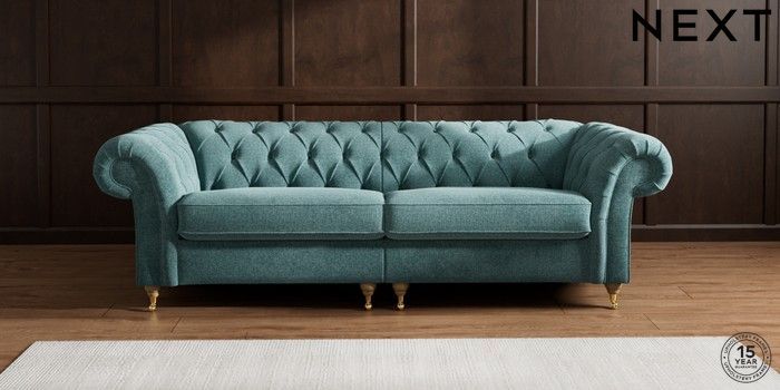 7.2.10 Gosford II Deep Sit 4 Seater Sofa Chunky Chenille Mid Teal Green Castor - Light | Made Click here to use our website with more accessibility support, for example screen readers