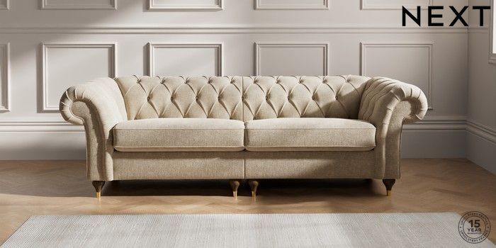 7.2.10 Gosford II Deep Sit 4 Seater Sofa Chunky Weave Cream Modern Turned Metal Cap - Mid | Made Click here to use our website with more accessibility support, for example screen readers