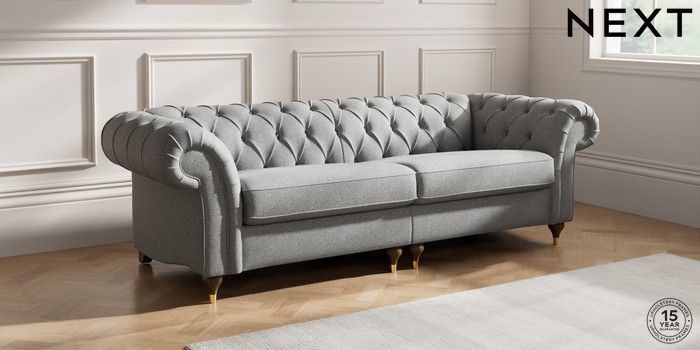 7.2.10 Gosford II Deep Sit 4 Seater Sofa Chunky Weave Mid Grey Modern Turned Metal Cap - Mid | Made Click here to use our website with more accessibility support, for example screen readers