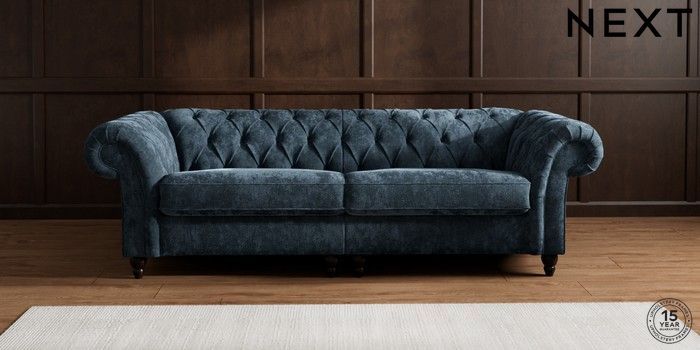 7.2.10 Gosford II Deep Sit 4 Seater Sofa Distressed Velour Midnight Blue Low Turned - Dark | Made Click here to use our website with more accessibility support, for example screen readers