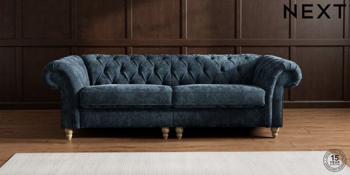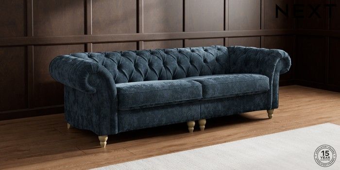 7.2.10 Gosford II Deep Sit 4 Seater Sofa Distressed Velour Midnight Blue Low Turned - Light | Made Click here to use our website with more accessibility support, for example screen readers