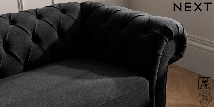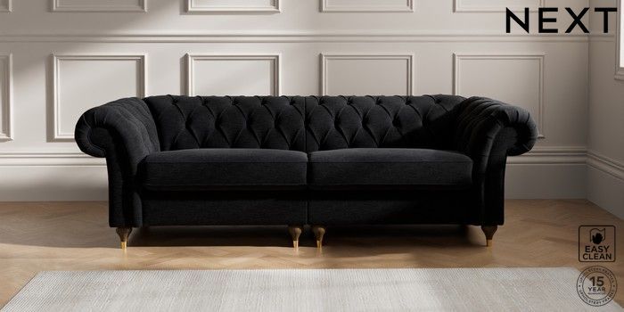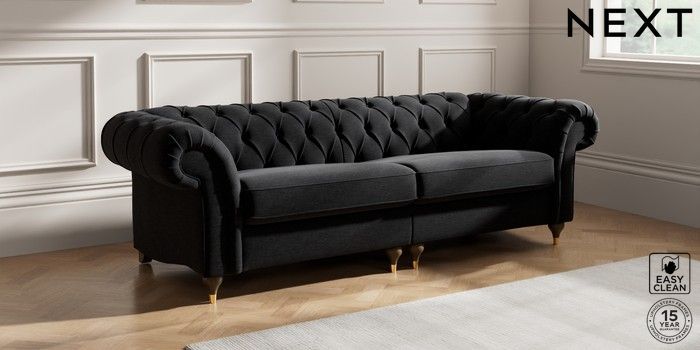 7.2.10 Gosford II Deep Sit 4 Seater Sofa Fine Chenille Easy Clean Black Modern Turned Metal Cap - Mid | Made Click here to use our website with more accessibility support, for example screen readers