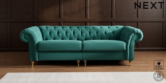 7.2.10 Gosford II Deep Sit 4 Seater Sofa Fine Chenille Easy Clean Dark Juniper Green Castor - Light | Made Click here to use our website with more accessibility support, for example screen readers
